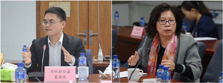 深慈联监事长闵齐双、市慈善会秘书长房涛发言